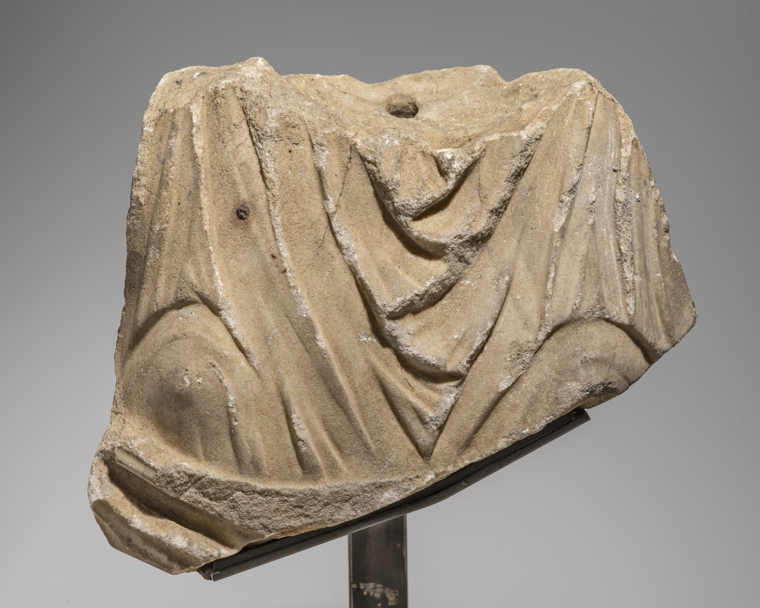 Capus P., "Buste féminin drapé acéphale", dans Les sculptures de la villa romaine de Chiragan, Toulouse, 2019, en ligne <https://villachiragan-apercu.studi-o.dev/ark:/87276/a_2000_313_1>.