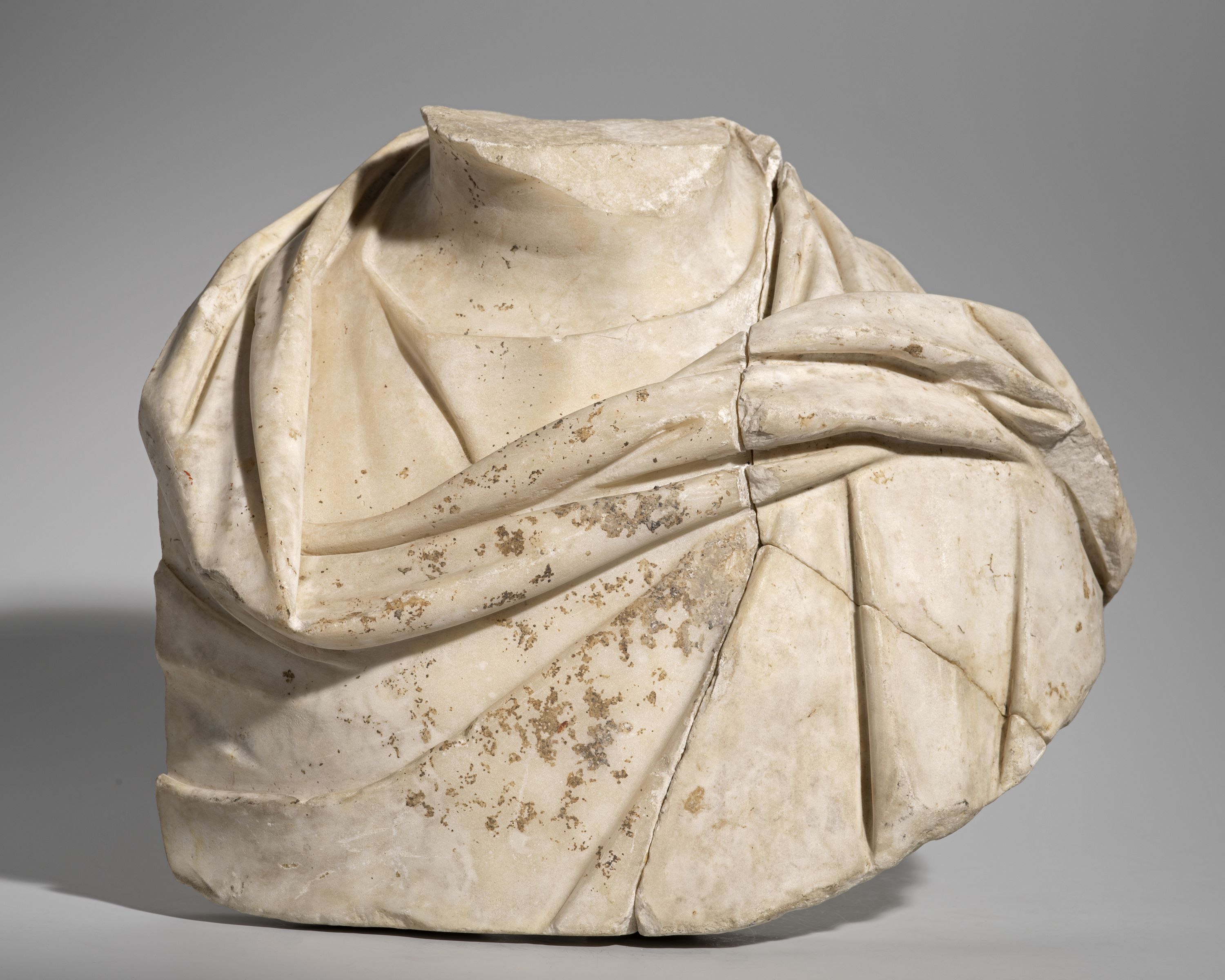 Capus P., "Buste drapé", dans Les sculptures de la villa romaine de Chiragan, Toulouse, 2019, en ligne <https://villachiragan-apercu.studi-o.dev/ark:/87276/a_Ra_105>.