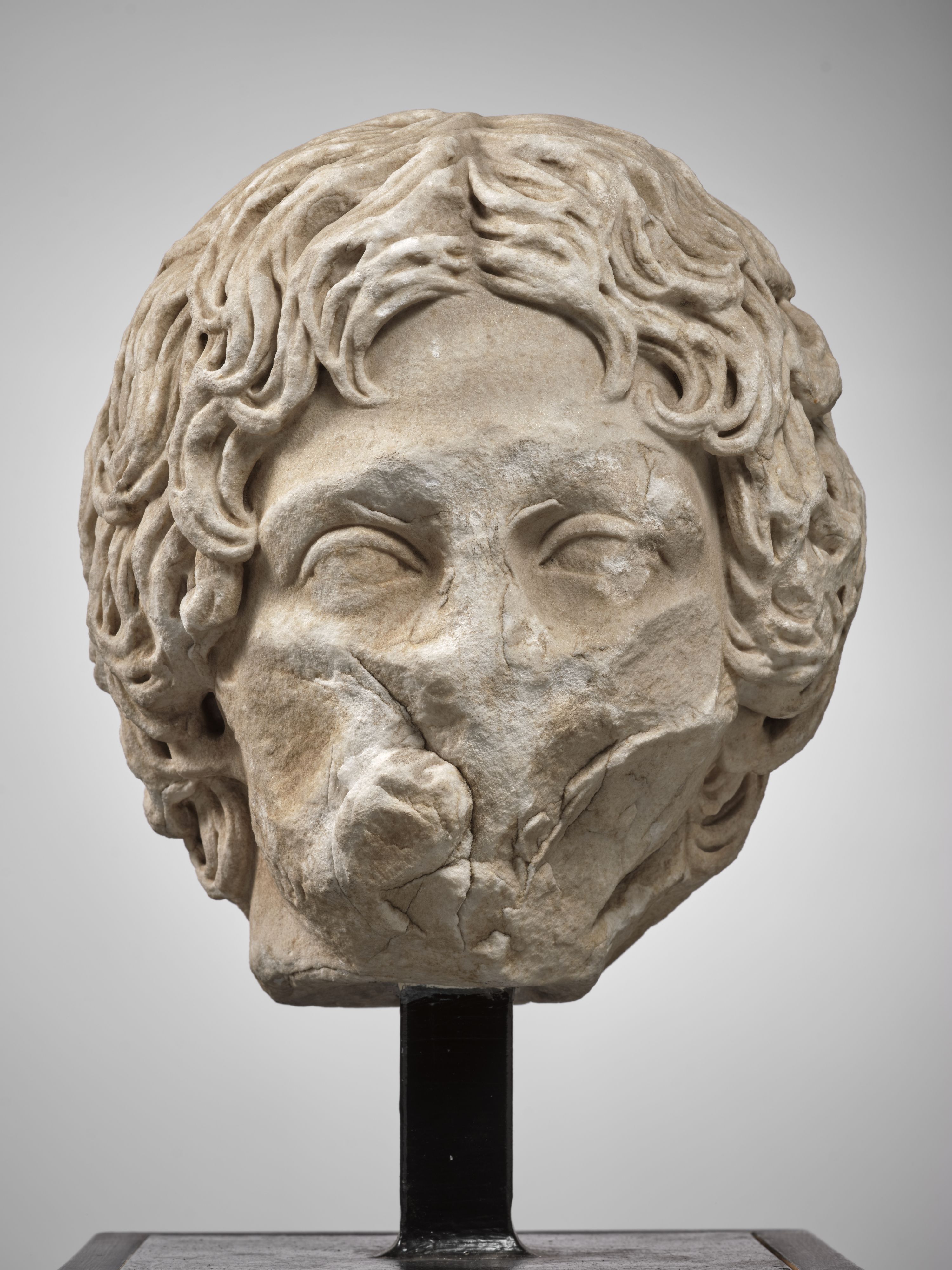 Capus P., "Tête de jeune homme anciennement dite "tête de barbare".", dans Les sculptures de la villa romaine de Chiragan, Toulouse, 2019, en ligne <https://villachiragan-apercu.studi-o.dev/ark:/87276/a_Ra_160>.