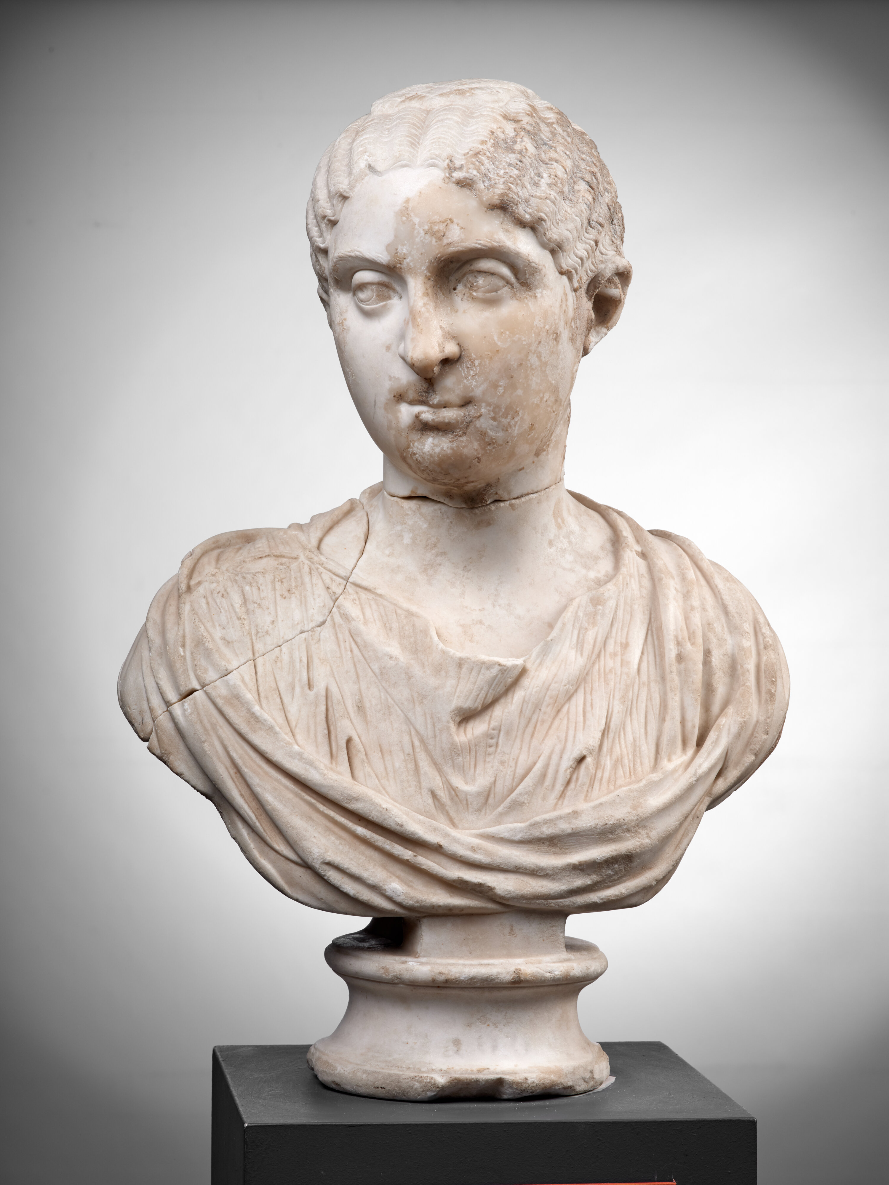 On connaît dix autres portraits, de même type, conservés à Rome, Copenhague, Dresde, Florence, Liverpool et Londres. Ceci prouve qu’il s’agit bien ici d’une représentation impériale. On a pu reconnaître, dans cette très jeune femme à l’expression mélancolique, Otacilia Severa, épouse de l’empereur Philippe l’Arabe, ou encore, avec davantage de probabilités, Tranquillina, femme de Gordien III (238-244). Mariée à l’empereur en 241, elle mourut trois ans plus tard, très jeune. Elle ne subit pas de condamnation à l’oubli après sa mort (damnatio memoriae) ce qui explique sans doute l’existence des répliques, nombreuses pour cette époque, encore conservées.