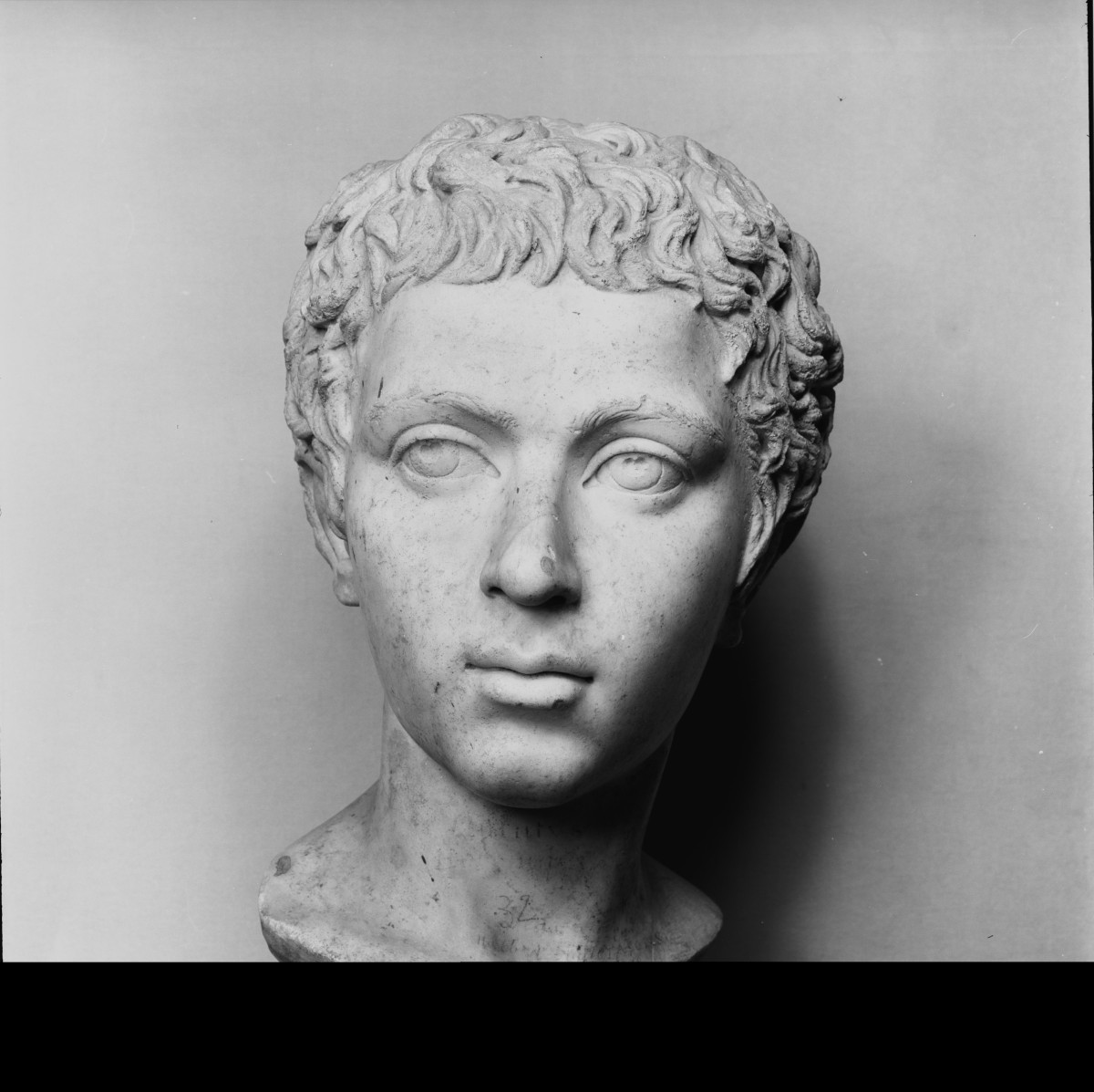 seconde tête, de même type, est conservée à Rome, dans les musées du Capitole. Ces deux répliques d’un même type iconographique ayant été découvertes en deux endroits différents de l’Empire, on préféra y voir non pas le fils d’un riche citoyen mais bien un prince. Puisque les premières effigies des princes Caracalla et Géta sont connues, seul Pertinax César s’est longtemps posé comme un candidat crédible K. Fittschen, P. Zanker, ; Katalog der römischen Porträts in den Capitolinischen Museen und den anderen kommunalen Sammlungen der Stadt Rom, Mainz, 1985 ; , no 79, p. 90, pl. 95-96 ; K. Fittschen, ; Prinzenbildnisse antoninischer Zeit (Beiträge zur Erschliessung hellenistischer und kaiserzeitlicher Skulptur und Architektur), Mainz, 1999 ; , p. 75-76.. Fils de Pertinax, lui-même successeur de Commode, Pertinax fils a tenu, en 193, le rôle de César et de princeps iuventutis moins de cent jours, avant que son père ne soit assassiné, après un règne de seulement trois mois. Il subit lui-même les foudres du colérique Caracalla qui le fit mettre à mort en 212 ou 213. Pertinax fils et sa mère, Flavia Titiana, ne reçurent ni honneur ni titre et ne furent pas représentés sur les monnaies de Rome mais sur certaines frappes d’Alexandrie.