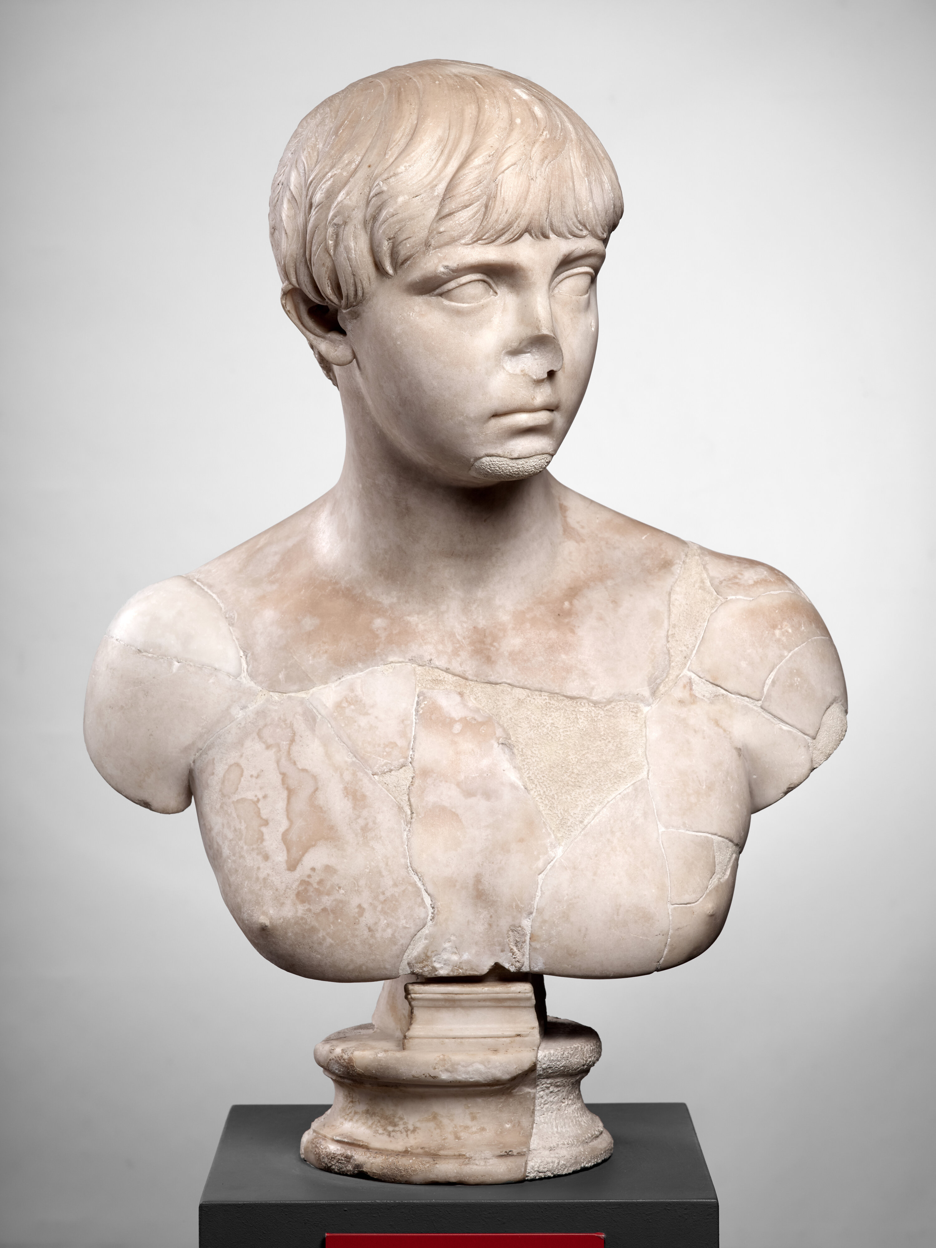 On ne peut rattacher un nom à ce portrait de qualité ; cependant, une tête, malheureusement très dégradée, du Palais du Quirinal, à Rome, pourrait représenter le même personnage. Ce jeune garçon n’était donc pas n’importe qui. Bien entendu ce type de portrait héroïsé (car son torse est dénudé) et l’âge de l’individu ne permettent guère d’y voir un haut fonctionnaire impérial, comme ce sera le cas à la fin du IIe et au IIIe siècle pour plusieurs portraits « privés » de Chiragan. Cependant l’existence même d’une réplique à Rome montre bien les relations étroites existant entre la villa et le « centre du pouvoir ».