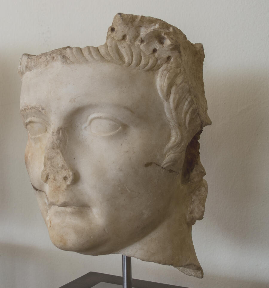 Capus P., "Tête de Tibère couronné de chêne", dans Les sculptures de la villa romaine de Chiragan, Toulouse, 2019, en ligne <https://villachiragan-apercu.studi-o.dev/ark:/87276/a_ra_90>.
