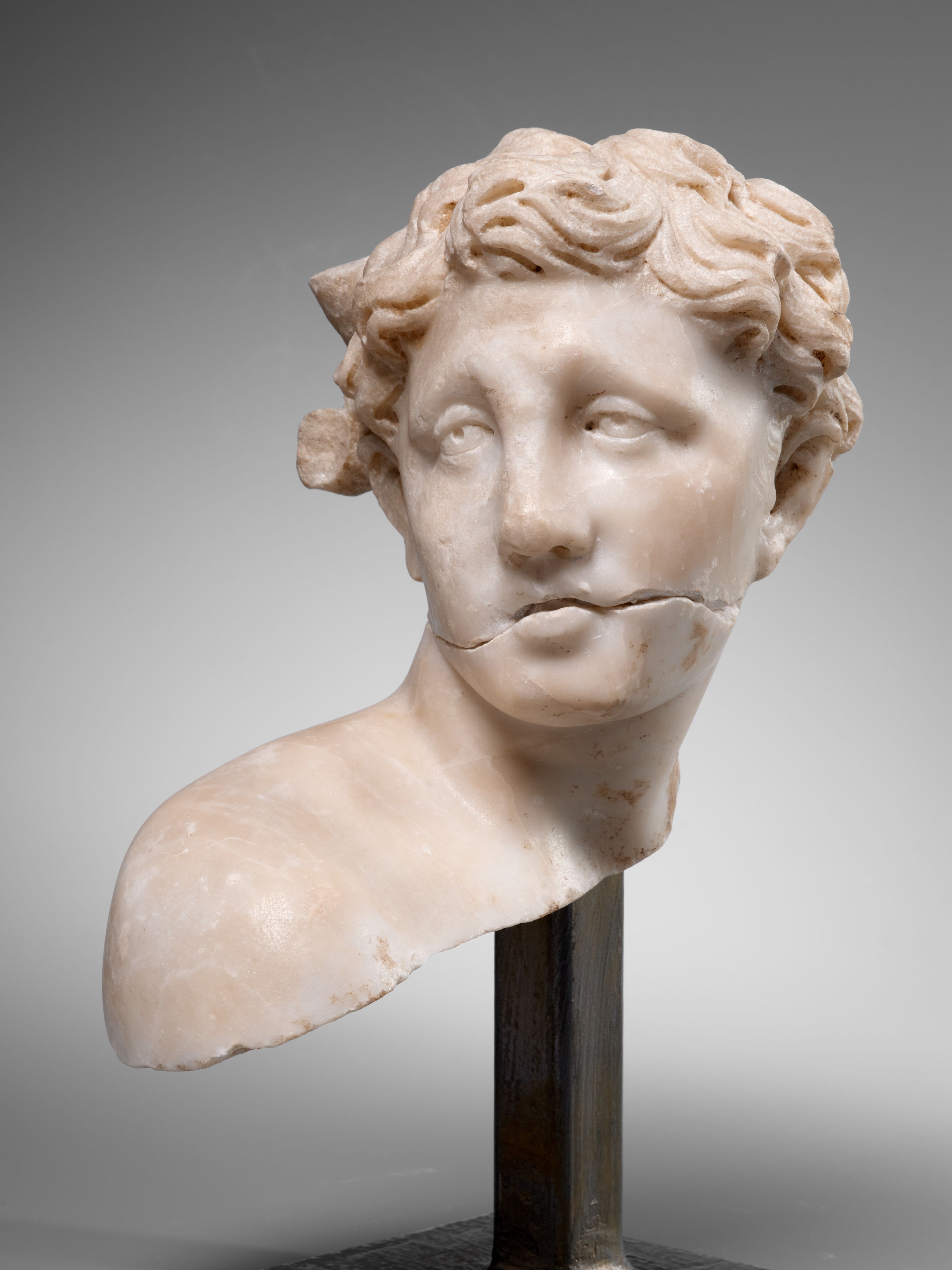 Capus P., "Tête idéale juvénile masculine", dans Les sculptures de la villa romaine de Chiragan, Toulouse, 2019, en ligne <https://villachiragan-apercu.studi-o.dev/ark:/87276/a_Ra_158>.