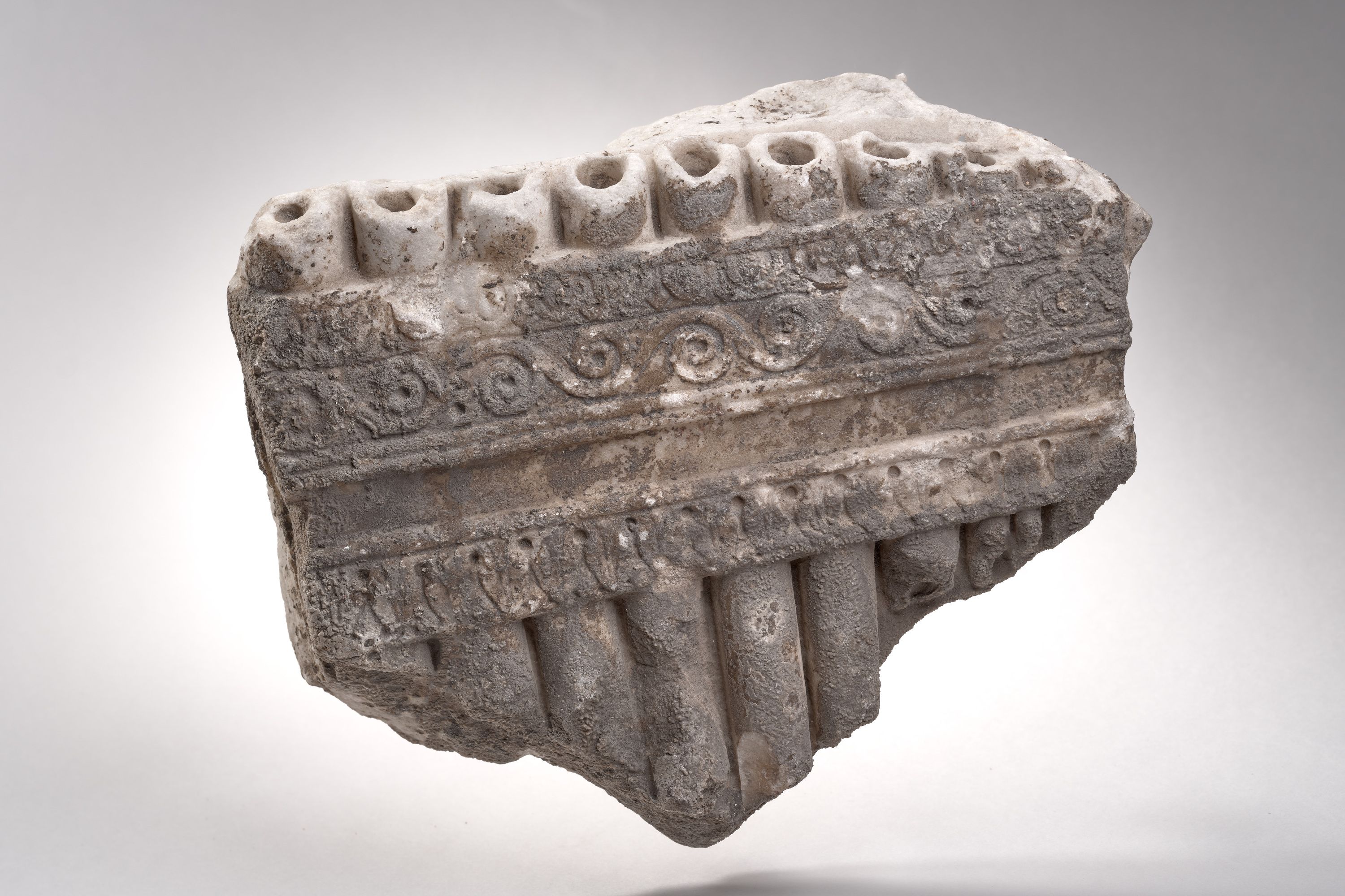 Capus P., "Fragment d’une flûte de Pan ou d’un orgue hydraulique", dans Les sculptures de la villa romaine de Chiragan, Toulouse, 2019, en ligne <https://villachiragan-apercu.studi-o.dev/ark:/87276/a_Ra_108_c>.