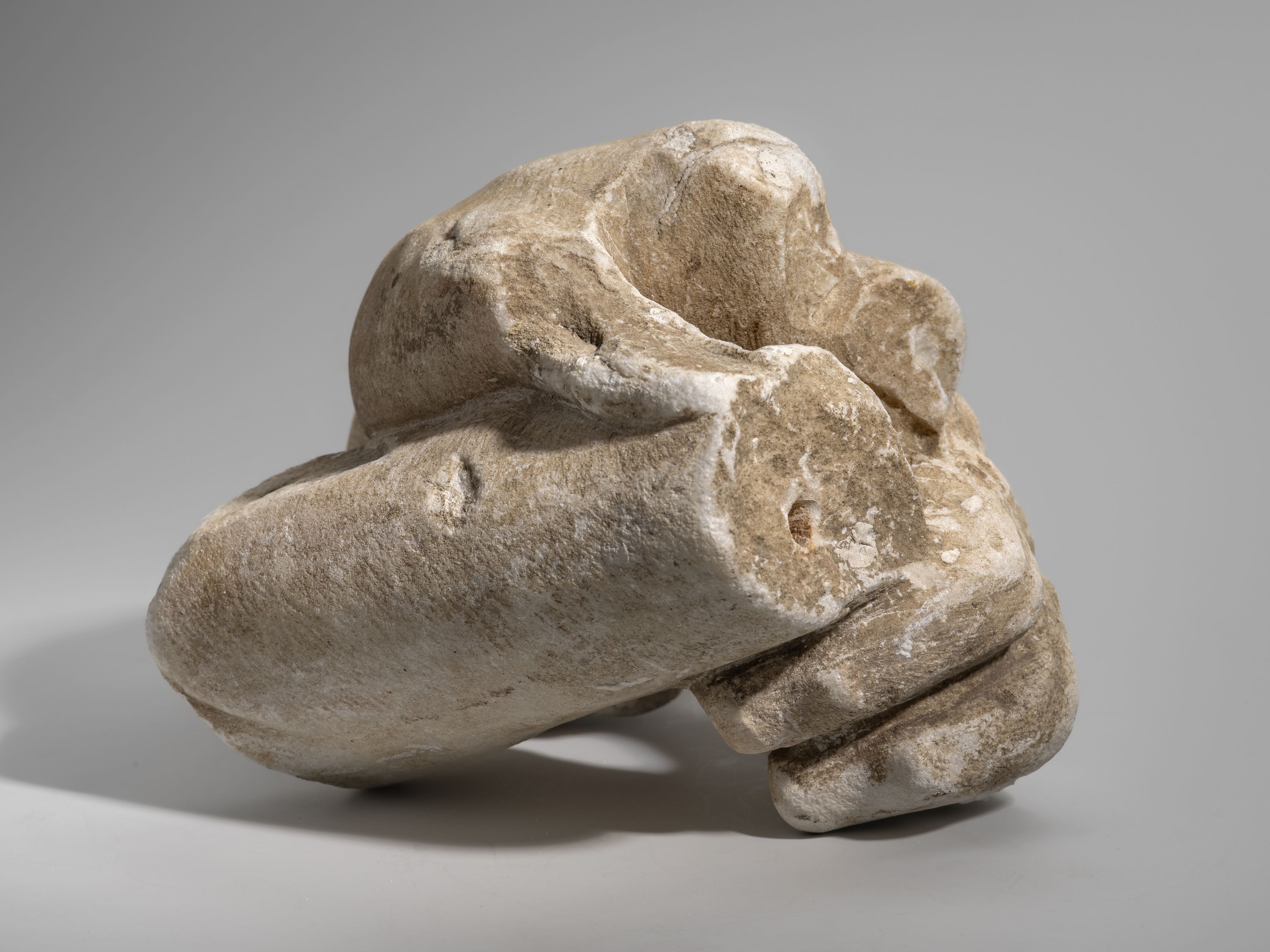 Capus P., "Main gauche tenant un objet indéterminé", dans Les sculptures de la villa romaine de Chiragan, Toulouse, 2019, en ligne <https://villachiragan-apercu.studi-o.dev/ark:/87276/a_2000_311_4>.