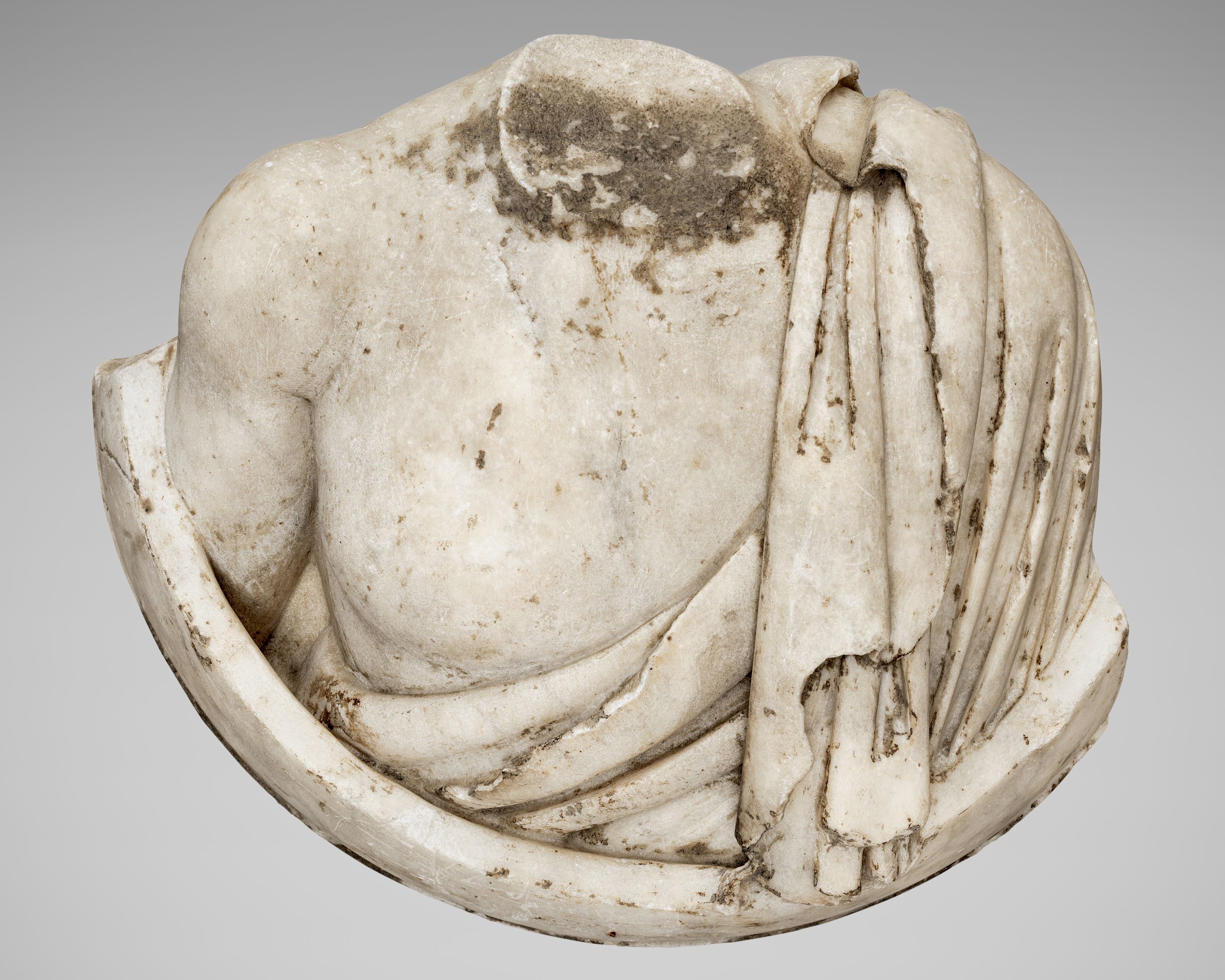 Capus P., "Divinité acéphale sur médaillon", dans Les sculptures de la villa romaine de Chiragan, Toulouse, 2019, en ligne <https://villachiragan-apercu.studi-o.dev/ark:/87276/a_Ra_34_c>.