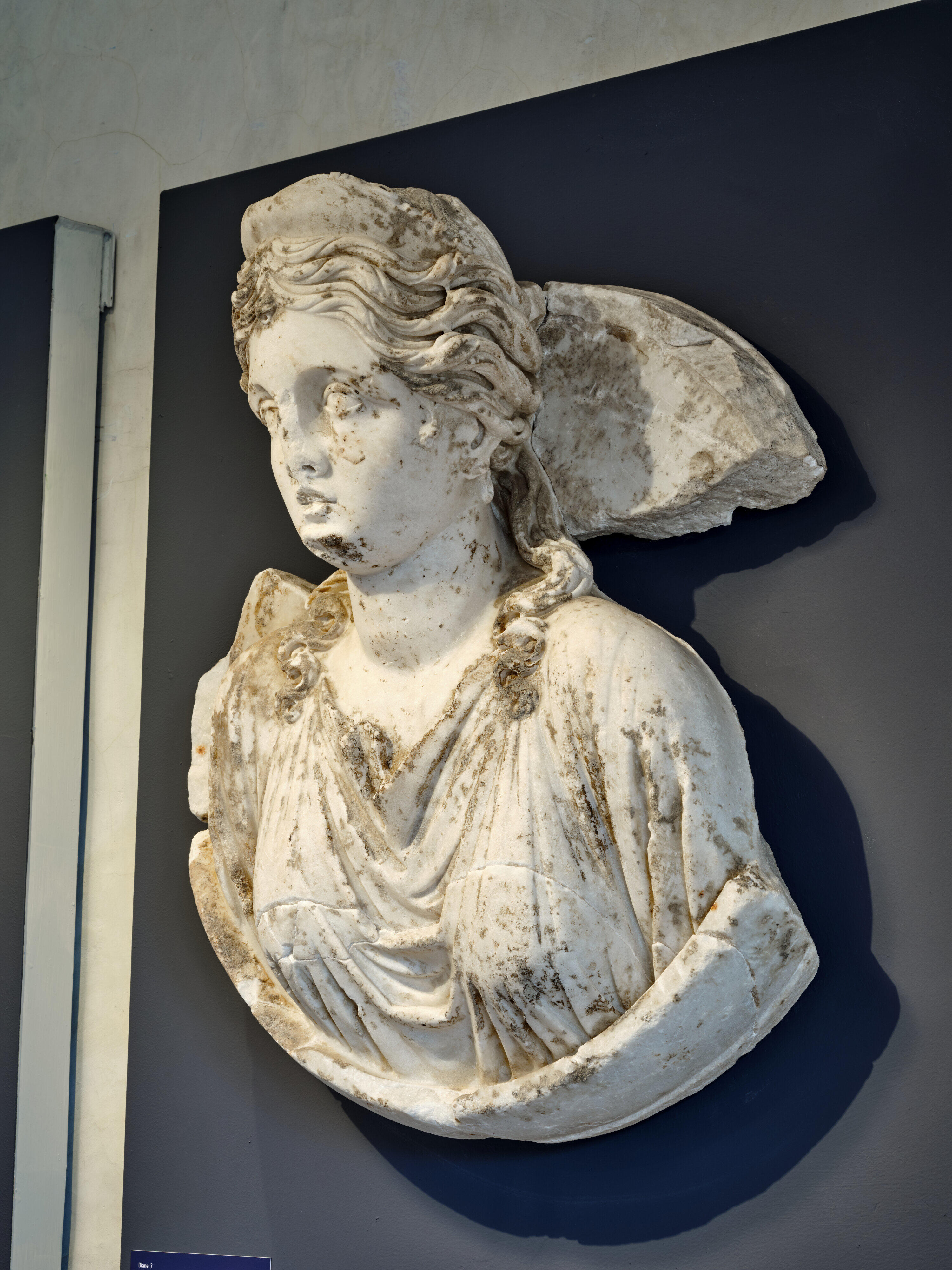 Capus P., "Diane (?)", dans Les sculptures de la villa romaine de Chiragan, Toulouse, 2019, en ligne <https://villachiragan-apercu.studi-o.dev/ark:/87276/a_ra_34_h>.